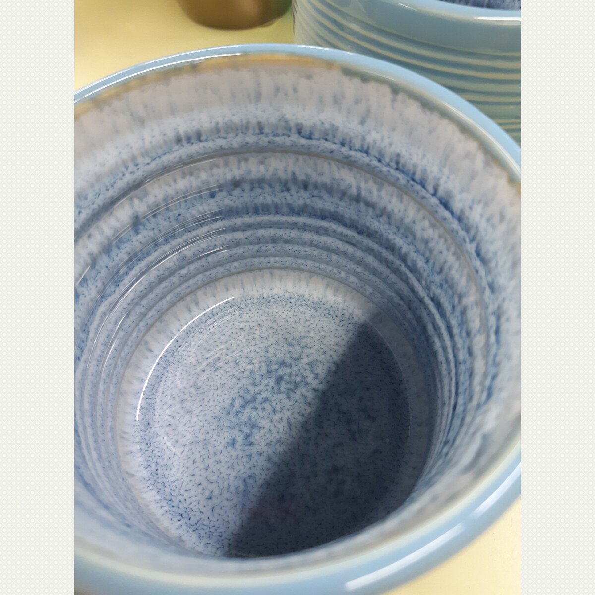Она керамическая. Очень красивая, внутри она как будто море. К сожалению, на ценнике не было указано какого размера эта кружка. Думаю, что где-то 250 мл. Стоимость 159 рублей, поэтому я и боюсь, что их раскупят. 😅