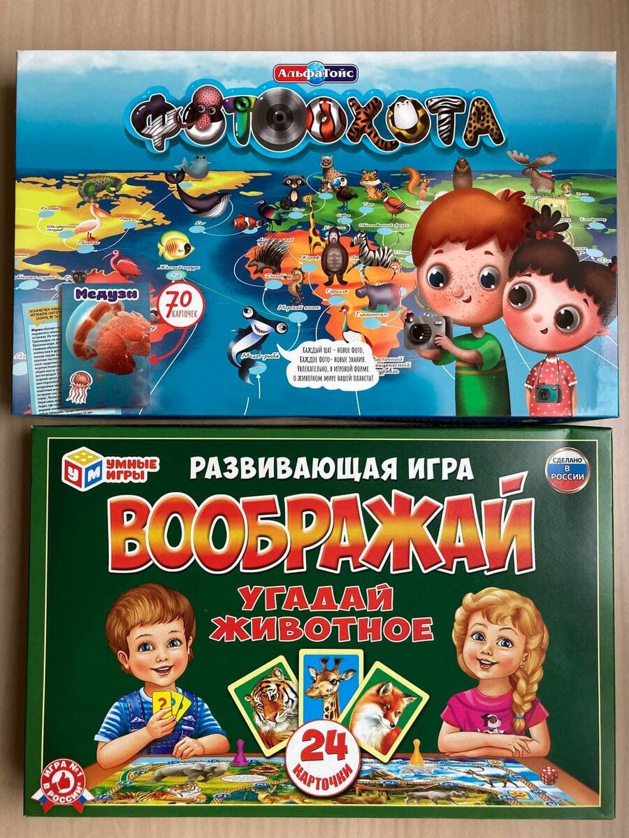 В коллекции нашей семьи есть две похожих игры - "Фотоохота" и "Воображай. Угадай животное". Обе относятся к малобюджетным - стоят до 500 рублей. Одну из них мы решили приобрести, начитавшись положительных отзывов. Другую - потому что заинтересовали детали, которых нет в первой. В этом обзоре я подробно опишу и ту, и другую, чтобы их сравнить.