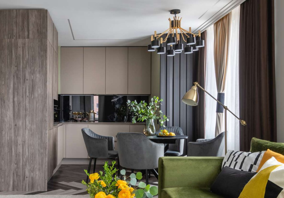 Как бы странно это не звучало, но проект этой трехкомнатной квартиры был реализован, для одинокой девушки с собачкой породы французский бульдог. У хозяйки по плану в квартире необходимо было разместить кабинет, которая подойдет и как гостевая комната, отдельную спальную комнату, гардеробную, ванную и гостевой санузел. При помощи грамотного дизайнера, все это было реализовано, выбор пал на один из