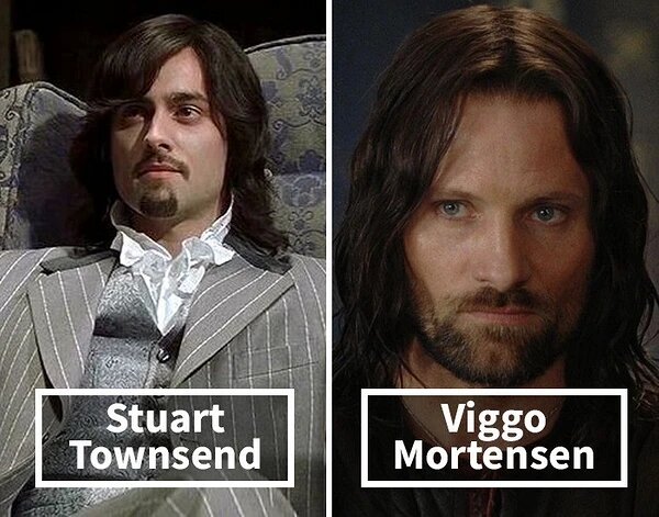 Существует множество переменных, которые движутся влево и вправо, заставляя продюсеров и режиссеров вносить в съемочный процесс создания фильма ряд изменений. И хотя некоторых проблем можно избежать при планировании, бывают моменты, когда изменения происходят внезапно, но приводят к лучшему. Одним из таких случаев бывает смена актеров. Причины бывают самые разные. Начиная от несоответствия персонажу или напряженному графику первоначально утвержденные звезды удаляются из производства, заканчивая "роль отдается кому-то другому". И замещающие актеры становятся воплощением персонажей, которых мы знаем сейчас. 1.Первоначально роль Арагорна во «Властелине колец» получил Стюарт Таунсенд Стюарт Таунсенд, относительно новое имя в киноиндустрии, получил роль Арагорна во «Властелине колец», но когда начались съемки, он к сожалению продержался всего несколько дней. Режиссер быстро заметил, что Таунсенд не подходит из-за возраста, слишком молод оказался, чтобы играть опытного следопыта. В итоге, бы