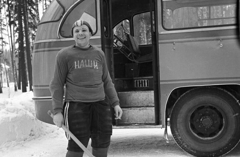 Очередная годовщина первого полета человека в космос. Не просто человека, а нашего с вами соотечественника, Юрия Алексеевича Гагарина. Полет, изменивший если не все, то очень многое в космонавтике и выдвинувший прогресс человечества в науке совершенно на новый уровень. Но, сегодня предлагаю уйти от красивых слов и дифирамбов и посмотреть, кем был этот человек в обычной жизни. Давайте сегодня вместе посмотрим редкие фото первого космонавта планеты. Все мы знаем, что космонавты отличаются богатырским здоровьем, график приема пищи и прочее у них расписан по минутам и они явно не приемлют вредных привычек. На самом деле, это не совсем так, космонавты тоже люди. Как видим на фото, Гагарин, помимо того, что очень любил хоккей, мог еще и сигаретку выкурить. Но, скажем честно, этим он не баловался. Гагарин был обожаем женщинами всех возрастов. Вот это он в забавной кепке вместе с датскими студентками. Это уже Гагарин что-то объясняет Фиделю Кастро. А вот к алкоголю первый космонавт, на самом д