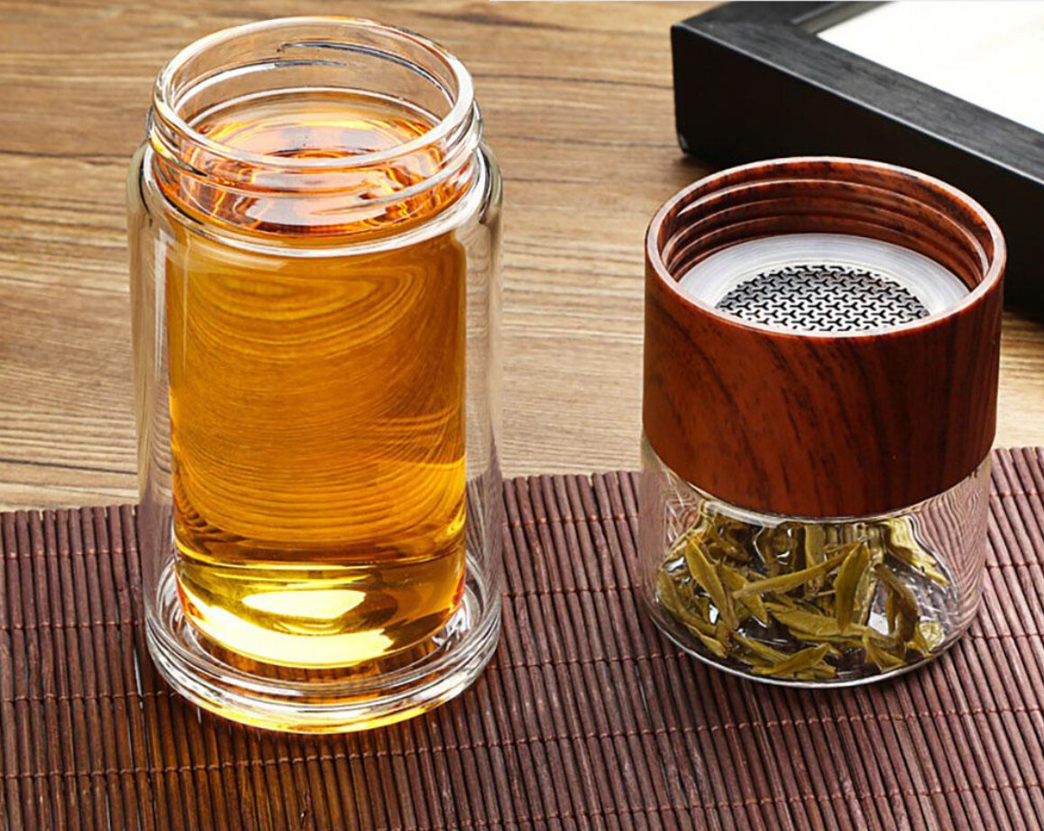 Вы такое раньше видели? Я нет. По-моему это очень удобно заваривать дорогие сорта чая. Насыпал заварки, налил воды, подождал, перевернул, ненужную часть открутил и пей свой свежезаваренный чаёк. Обожаю чай из прозрачных стаканов. Виден насыщенный и потрясающий цвет чая.