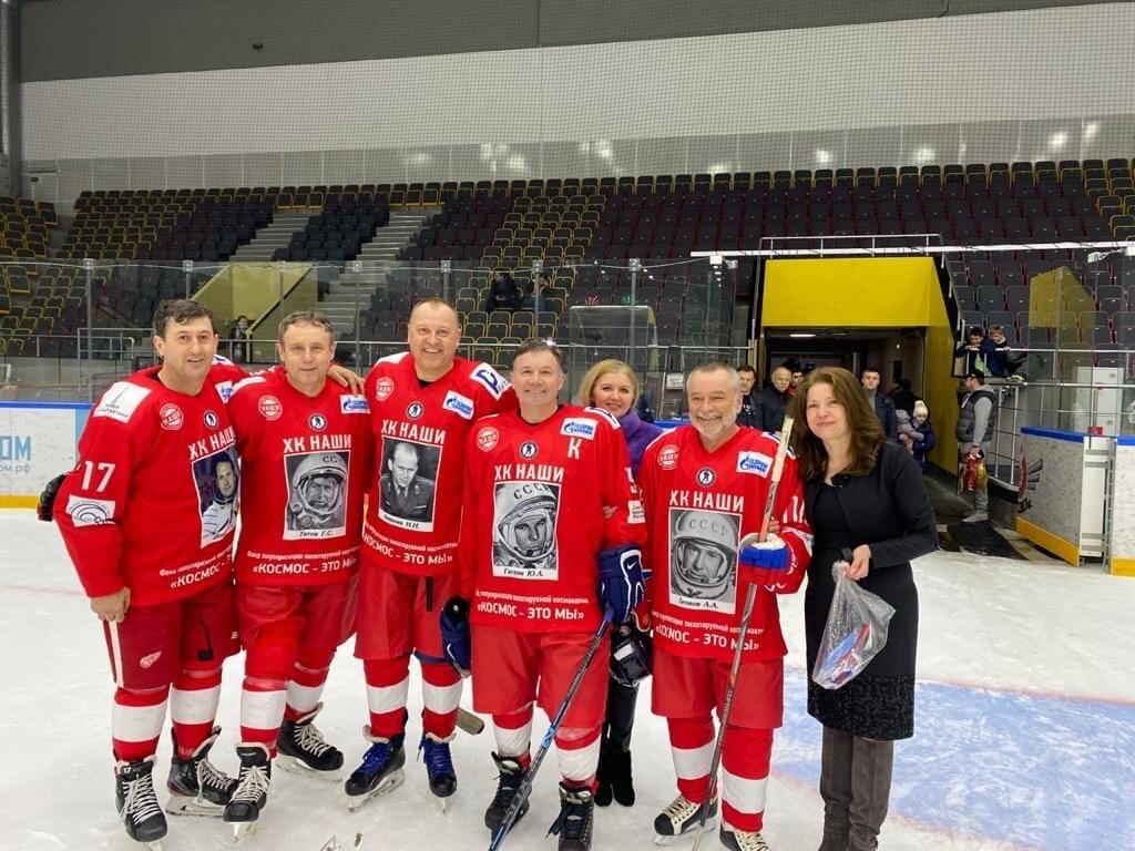 На фото – второй справа космонавт Юрий Лончаков, а вратаря на двух девушек променяли...