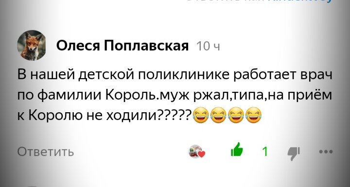 1.Комментарий к одной из прошлых частей смешных и интересных имен,фамилий от "Олеся Поплавская".