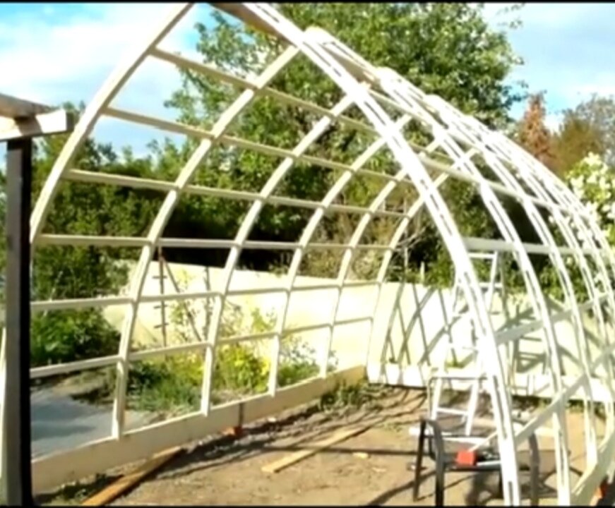 Для стен применяется брусок 25мм на 50мм и длиной 4м или 6м. Получается, что вам надо сделать шаблон лугу, в котором будете делать соевые элементы теплицы.