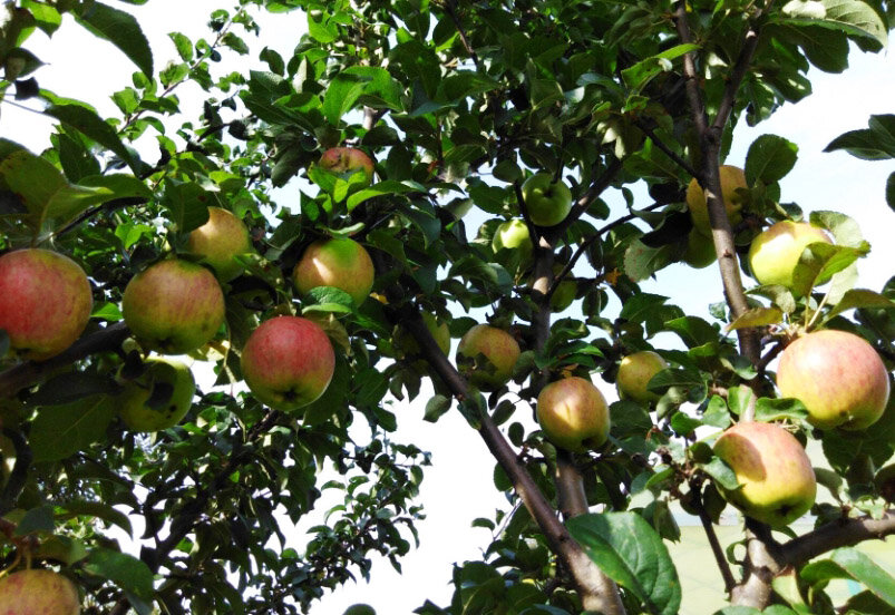 Красное яблоко мигает нам с дерева,