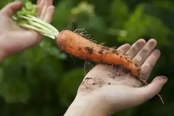 Хитрость №1. Морковь любит органику - без нее растет мелкая, с бледным листом. Но любит она его лишь внесенный под предшественников - или при заправке с осени. Подкормку навозом, перегноем морковь не жалует: быть морковке раздвоенной, "рогатой" и с "бородой" - с многочисленными тонкими волосовидными корешками.