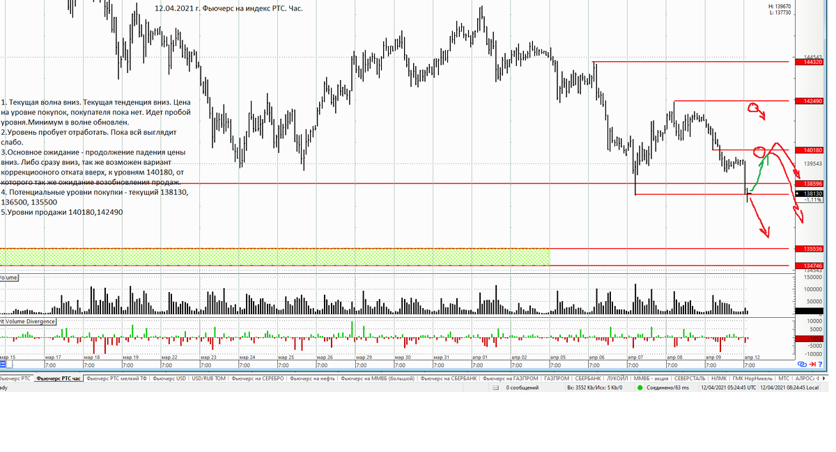 Рынок конечно не даёт поскучать нам. Сегодня снова обновили минимум, пусть и краешком зацепили но тем не менее. Общая тенденция пока формируется как ни печально вниз. Локально цена сейчас стоит на уровне покупки, и вроде как даже пробует изобразить отскок, но пока всё как то очень и очень невыразительно. Может быть через час по
