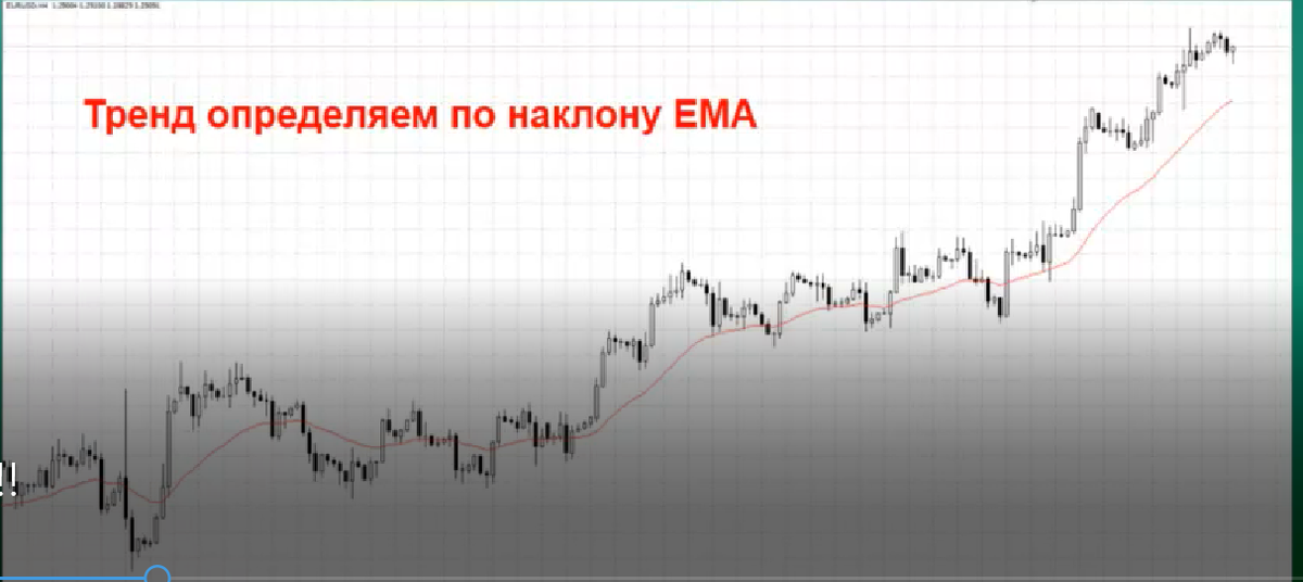 Для этого, открываем график какой-либо пары на Н4 и загружаем в него какой-нибудь трендовый индикатор. например скользящую среднюю с периодом, к примеру 100.