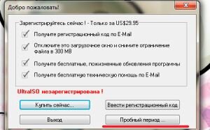 Теперь непосредственно к вопросу, как записать образ Windows на флешку при помощи UltraISO. Программа платная, но разработчик предоставляет пользователям возможность бесплатного пробного периода. Этого вполне достаточно для того, чтобы сохранить образ на Flash. Тем более, что делается это один раз, а накопитель с записанной Windows можно применять для хранения файлов, как и прежде, используя оставшееся пространство.