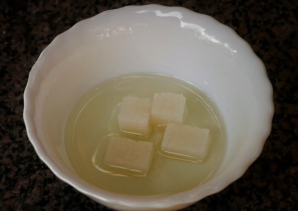 С кино все ясно. А как в действительности? Давайте проведем опыт. Возьмем прозрачный объем с бензином, засыпаем в него несколько кубиков сахара "Экстра" (ГОСТ/GOST 33222-2015) и ожидаем, когда кубики превратятся в мельчайшие частицы.