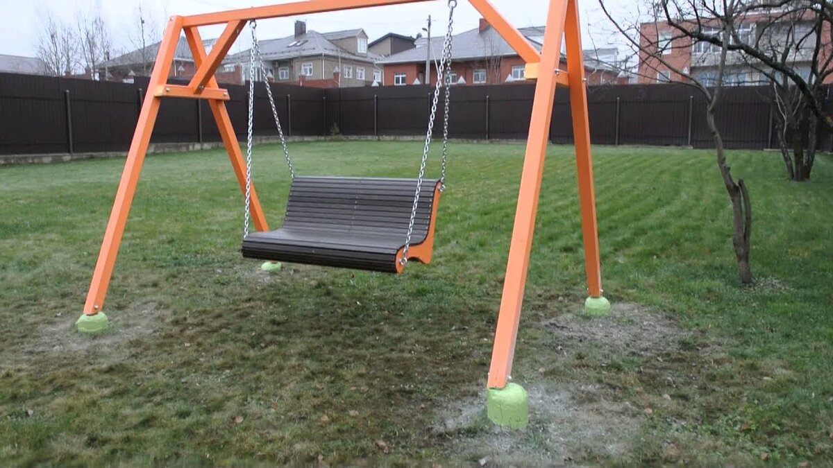 Земля под качелями и вокруг них должна быть очищена от камней и засеяна травой.