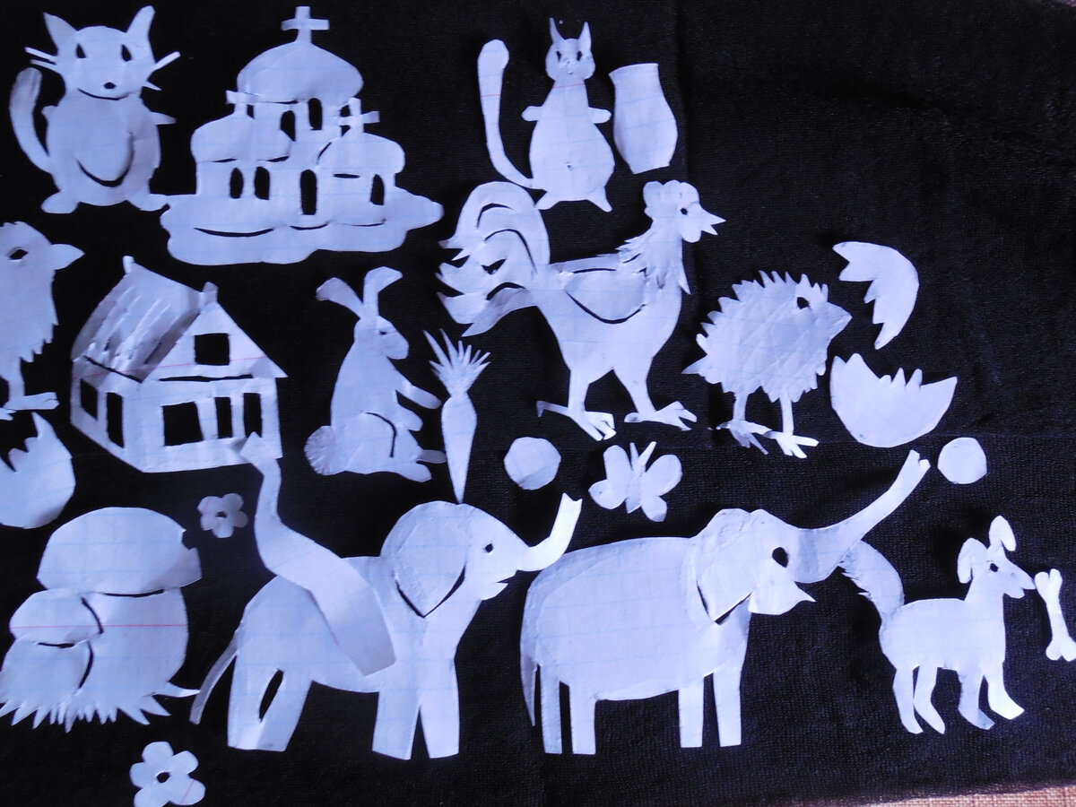 Кстати, один силуэт (олень) вырезан из газеты. Это на заметку тем, кто не умеет рисовать. Совсем не умеет. А если хоть чуть-чуть можете, то всё получится!