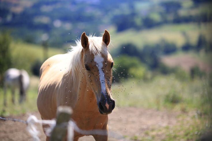 Всегда помните, что сначала нужно протестировать немного раствора. Некоторым лошадям не нравятся спреи, поэтому вам может понадобиться распылить спрей от мух на губку и нанести таким образом на все тело лошади.