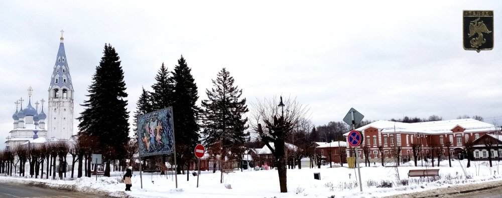На том же витраже на «Трубной», над стилизованными изображениями палехских храмов, распростерла крылья Жар-птица. Это геральдический символ всего Палехского района. Ее можно встретить и на стене Дома ремесел, и на стелах при въезде в Палехский район и сам поселок. Палех – не город, своего герба не имеет, но в коллекциях фалеристов можно найти значок с его именем и сказочной птицей на черном фоне гербового щита.