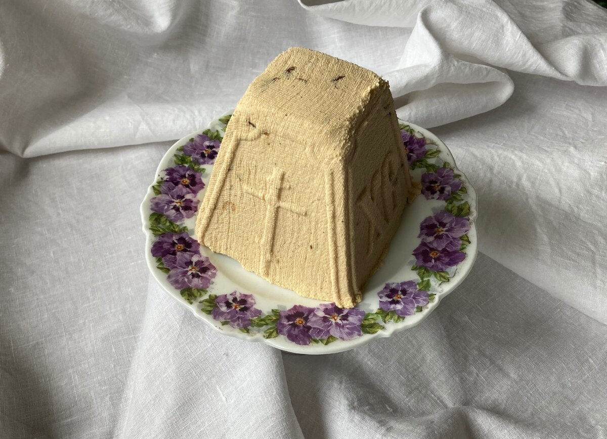 Фотму (или то, что вы используете в качестве нее) нужно выстелить чистой марлей. И она обязательно должна быть мокрой! Это гарантирует, что марля потом легко отделится от поверхности пасхи, не нарушив ее целостности.