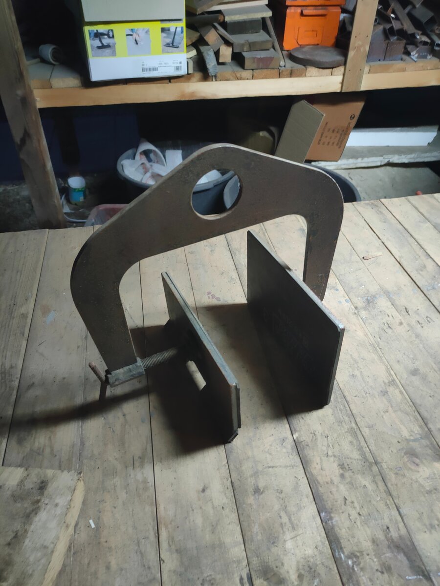 Для этих целей изготовлено приспособление (фото) — струбцина для аккуратного зажатия и поднятия панели. Такую струбцину, если Вы будете пользоваться краном, мы изготовим и передадим с каркасом: