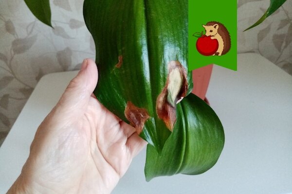 Если же поражение обширное, выглядеть растение с поврежденным листом будет совсем печально. В этом случае я рекомендую поступить следующим образом.