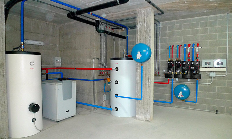Тепловой насос грунт вода забирает тепло земли, накопленное от солнца. На глубине 5-7 метров температура имеет одинаковое значение практически круглый год. Теплообменник забирает тепло и передает хладагенту. В зависимости от геологии и площади участка можно использовать горизонтальный или вертикальный коллектор. Горизонтальный укладывается под верхний слой грунта, для вертикального необходимы скважины глубиной 50-150 метров.