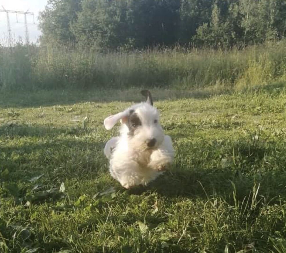 Ровно год назад, 13 апреля 2020 родилась маленькая силихемка, смешной терьерчик с левым черным ухом и правым черным глазом. Записанная в метрике, как «Зайка Моя», она действительно очень напоминала зайчика.