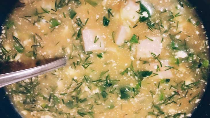 Затем добавляем также мелко нарезанные укроп и петрушку.