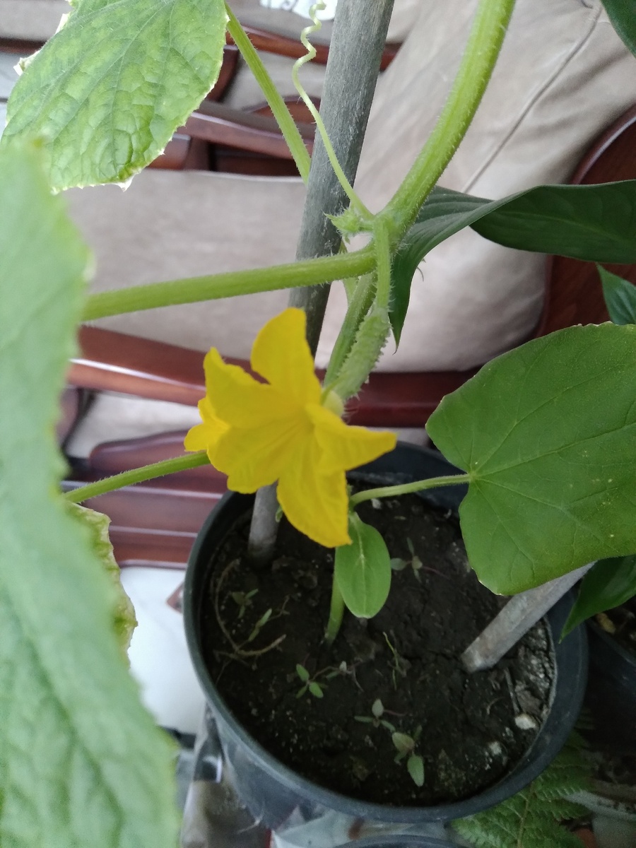 В марте месяце загорелось мне вырастить свои огурчики, на подоконнике. Хотя до полноценного сезона с урожаем в теплице совсем ничего, но вот захотелось! И нечего делать - посеяла 3 семечка в один горшок огурец сорта "Апрельский" (самоопыляемый) и стала наблюдать...