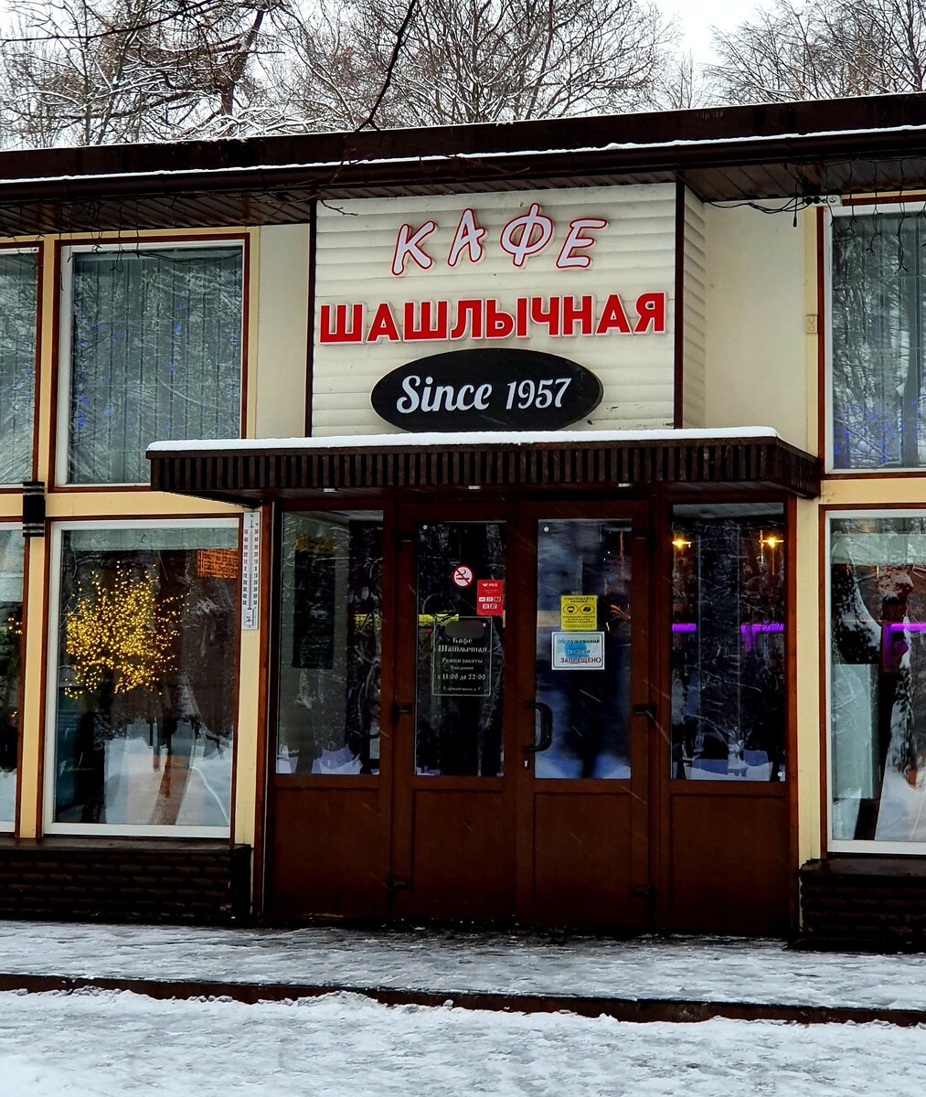 Ну почему Шашлычная существует "Since 1957", а не "Основана в 1957" или не работает элегантно и просто "с 1957" ?! Возможно, дизайнер посчитал, что с английским солиднее. Привлекает внимание? Да. Но если в названии столько всего соединилось, какой микс будет ждать внутри? Хотя может там правда вкусно, лично не был - не знаю! А вы как думаете?