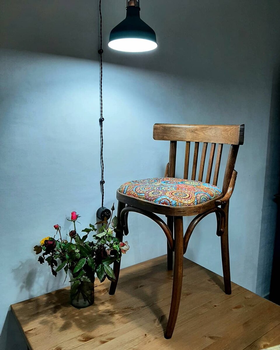 Итак, стул был разобран на составные части, старое покрытие я сняла сначала смывкой, а потом очищала шлифмашинкой и вручную. Дополнительно