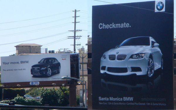 👉🏻 Все началось с билборда, на котором БМВ поздравлял Ауди с победой в конкурсе “Машина года
