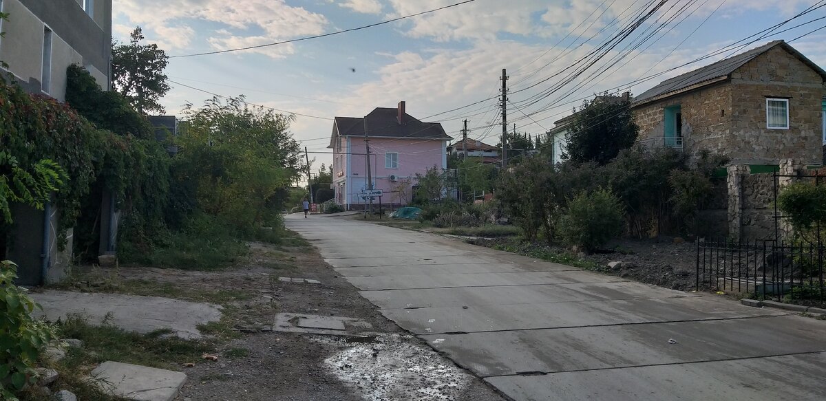 На рассвете видимо прошел легкий дождичек. Причем его интенсивность возрастала по мере моего приближения к морю. В Долинном переулке чуть брызгнуло, на улице Ленина помочило, а на улице Десантников было уже сыро. Я решил начать с новой части набережной, которая расположена ближе к живописному Карадагу. Честно сказать в архитектурном плане Коктебель просто ужасен, начиная с советской панельной пятиэтажки, и завершая новоукраинскими и новорусскими хоромами, более менее еще можно терпеть вид на советские профилактории в центре набережной. Особенно ужасно выглядит район на улице Десантников.