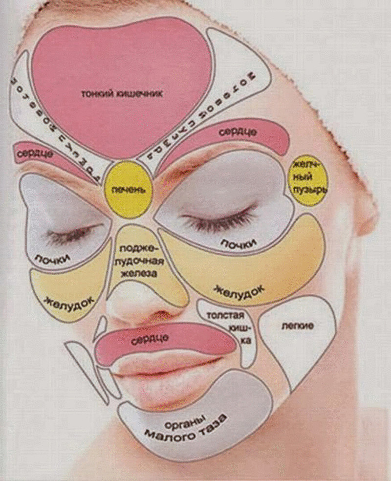 Прыщи на лице по зонам: карта прыщей на лице - Прыщи на лбу свидетельствуют о несоблюдении режима питания (сладкая, жирная пища, газированные напитки). Также причинами возникновения прыщей на лбу могут быть некоторые заболевания желудка, поджелудочной железы, желчного пузыря, кишечника, дисбактериоз и др. ; - Прыщи на подбородке могут быть связаны с нарушениями в работе эндокринной , пищеварительной системы, при нарушении гормонального баланса в половой сфере (большое содержание мужских гормонов), либо воспалениями яичников (кисты). - Прыщи в области губ, на губах возникают при неправильной работе пищеварительного тракта. Для устранения причины побольше ешьте фруктов и овощей; - Прыщи на носу обычно являются следствием гормонального дисбаланса в подростковом возрасте, в более зрелом же нарушениями в эндокринной, иммунной, пищеварительной, либо сердечно - сосудистой системе.