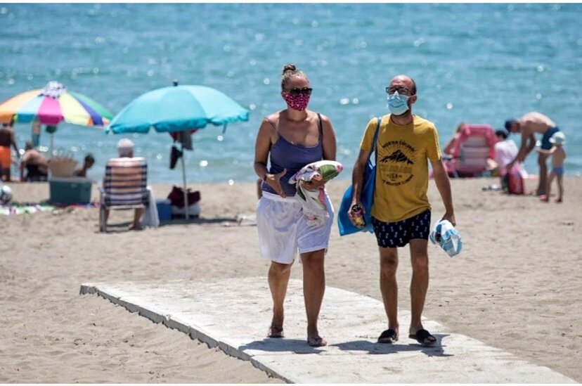 Испанские власти 🇪🇸предлагают обязательное использование маски на пляжах при ходьбе или в тех ситуациях, когда нет безопасного расстояния, это 1,5 метра.