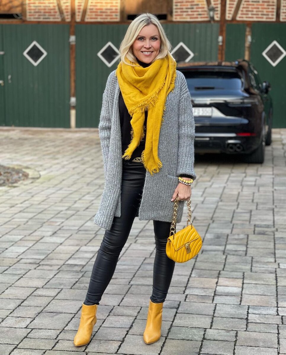 Как сочетать цветную обувь с одеждой? Простой трюк : цвет обуви должен быть сходным с одним из задействованных в образе: будь то шарф, шапка, ремень или узор на ткани одежды. Смотрится намного эффектнее, чем с простыми черными сапожками.