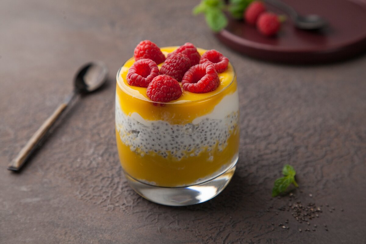 Для чиа-пудинга манго-малина нужны: