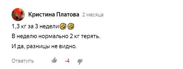 На своем канале я постоянно вижу комментарии дам, которые смеются над моим медленным темпом похудения. Для справки: в первые 3 недели после старта похудения у меня ушли 1,3 кг, за два месяца сбросила 3 кг.