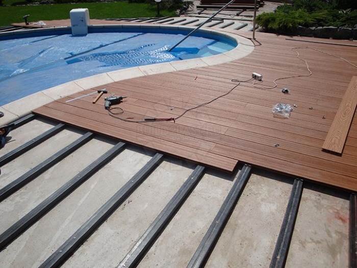Монтаж покрытия из террасной доски мало чем отличается от укладки шпунта или сборки пола из обычной обрезной доски. Но так как терраса находится под открытым воздухом, в ее конструкции нужно учесть некоторые детали. Что важно учесть при монтаже террасной доски Каркас для террасной доски Вариантов каркаса для будущей террасы множество, от простых деревянных лаг, до специальных винтовых металлических опор. Каждый вариант имеет свои плюсы и минусы, а также особенности по монтажу, но этот момент лучше уточнить по конкретным инструкциям и рекомендациям производителей. Но какой бы ни была основа, для каркаса под террасную доску есть 3 простых правила: Монтаж террасной доски Перед самим монтажом желательно подготовить рабочее пространство и саму террасную доску: А когда все подготовительные работы окончены, можно приступать к монтажу. Тут на выбор есть 2 варианта: Скрытый монтаж террасной доски Используются кляймеры или другие приспособления для крепления: Открытый монтаж террасной доски Исп