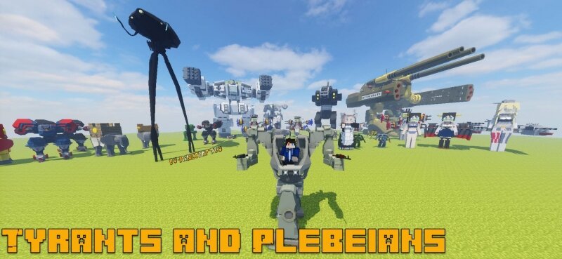 1. Пак Tyrants and Plebeians - это огромный пак для мода flans который содержит в себе кучу оружия, брони и военной техники. Здесь есть множество военных самолетов и вертолетов, военные корабли, куча разных роботов, танков, обычных военных машин, турелей.