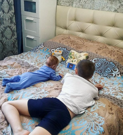 Когда Степе был месяц, к нам пришла медсестра и дала совет повесить в спальне телевизор, сына класть в подушки и включать ему без звука "Машу и медведя". Мы, были, мягко говоря, в недоумении от такого совета.