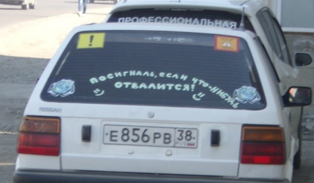 Надпись на автомобиле может многое рассказать о водители.