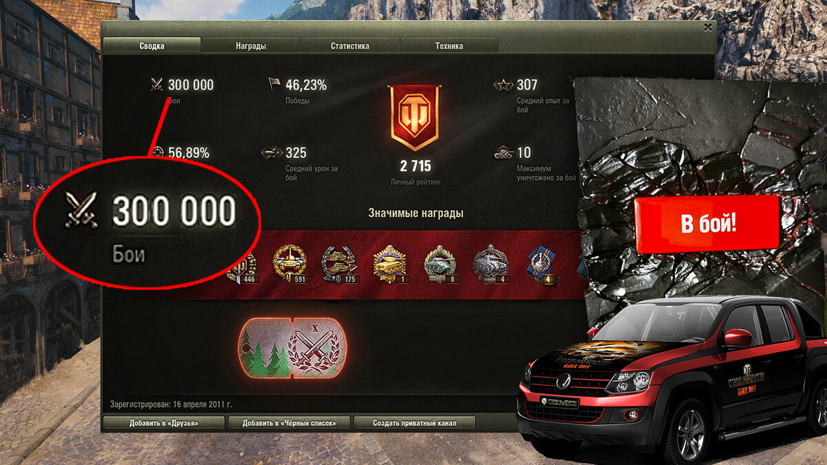 Всем привет! Еще никто в игре не преодолел планку в 300 тыс. боёв. И тот, кто сделает это первым - получит уникальный подарок от разработчиков, которой они подготовили еще очень давно... Автомобиль, дача или надгробная плита? Об этом в сегодняшнем выпуске.