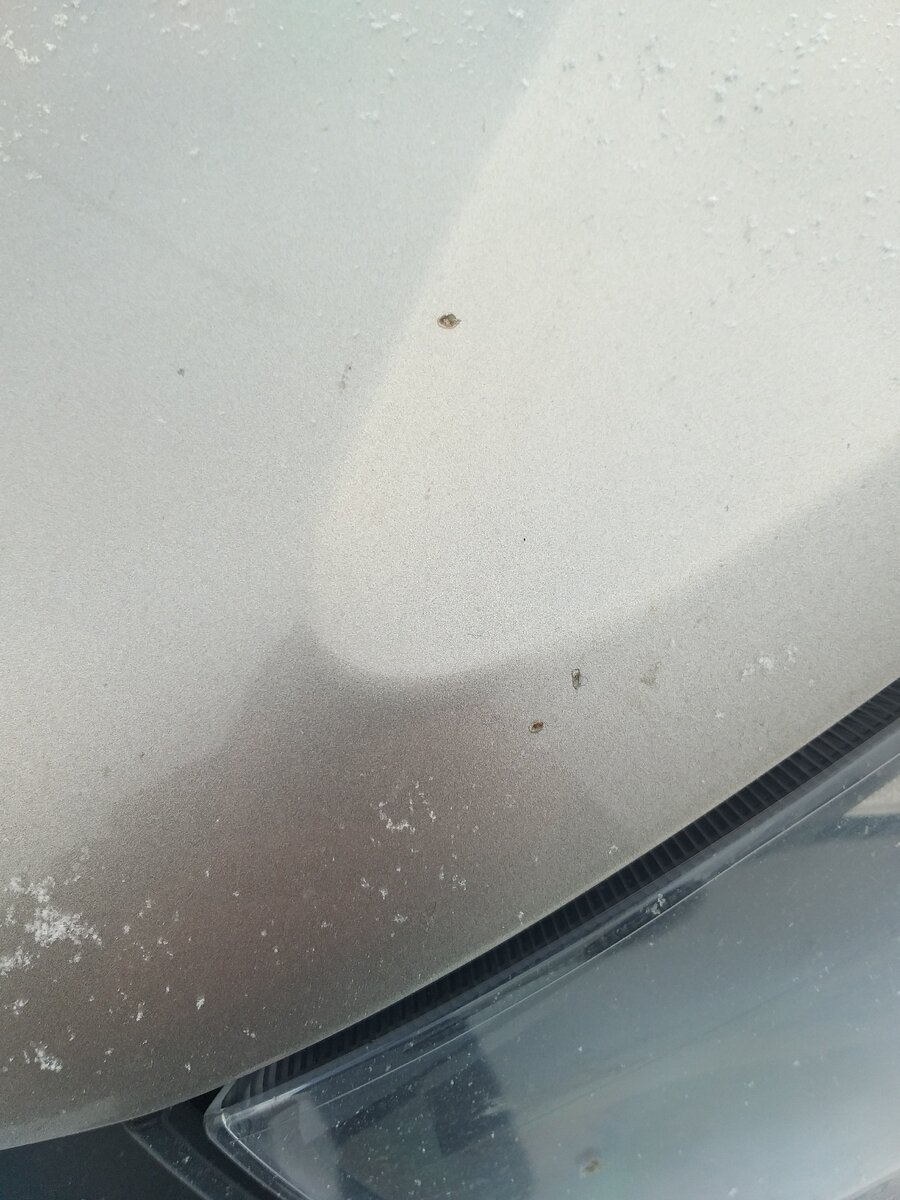 И зимой 2021 года появились первые рыжики на капоте от сколов. А появились они потому, что часто езжу по трассе, и их никак было не избежать. Сколы ржавеют моментально, достаточно
