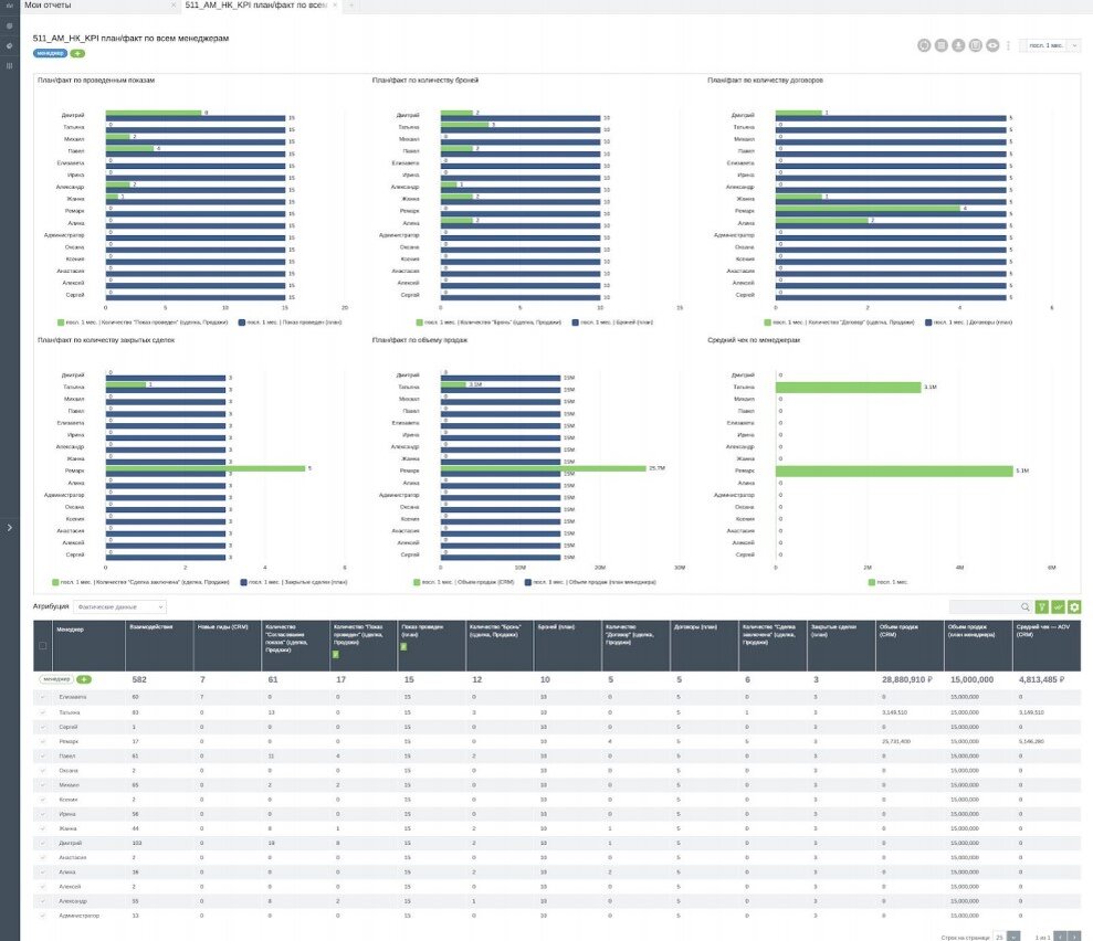 В данном отчете представлен план/факт по менеджерам по всей воронке продаж без когорт.