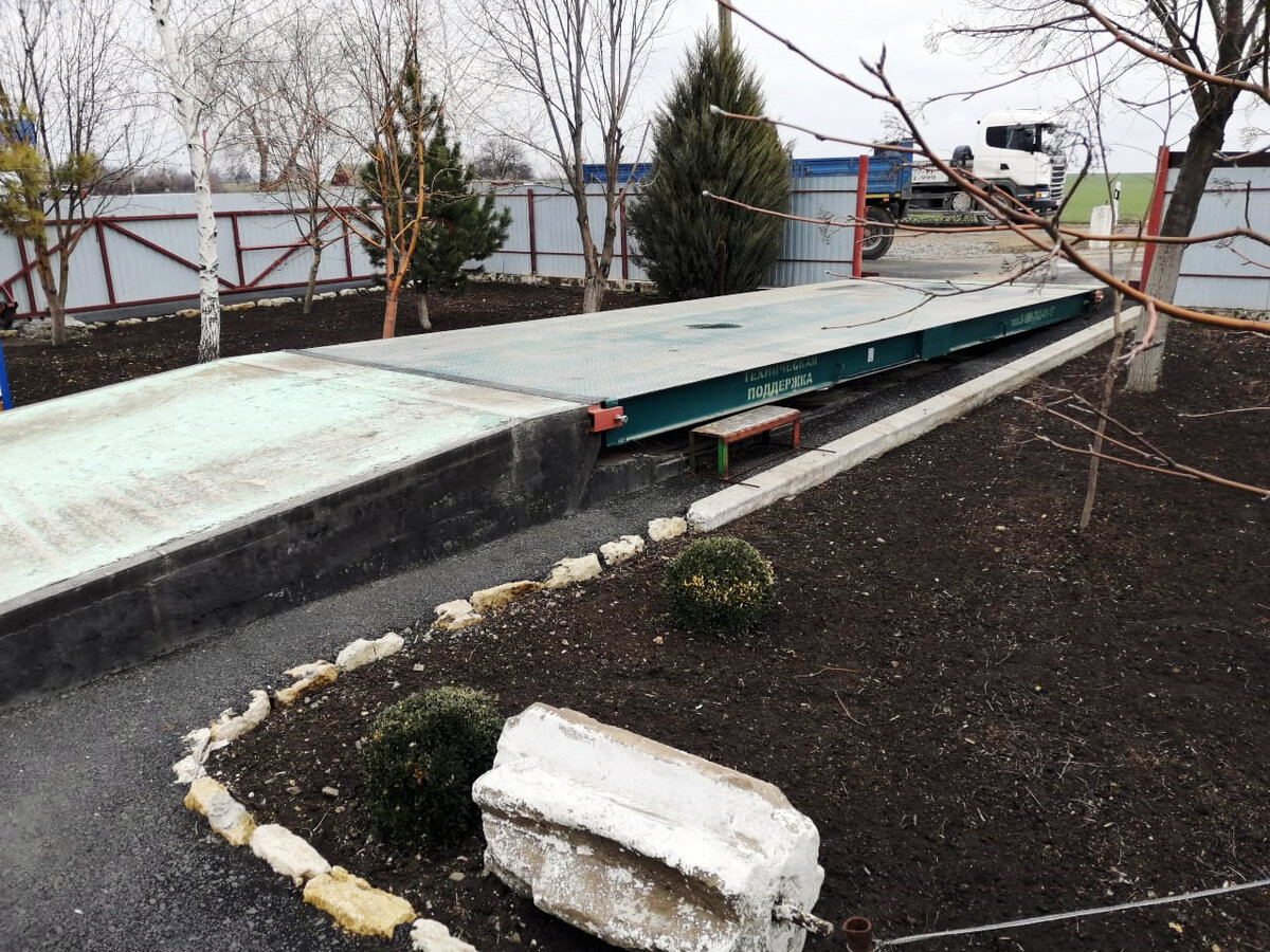 После подписания всей необходимой документации, на объект заказчика были направлены строительно-монтажные бригады, для строительства фундамента под весы. Заранее была арендована тяжелая техника, для выполнения земельных работ, по завершению которых была организована заливка монолитного фундамента. По достижению оптимальной прочности фундамента, были доставлены грузоприемные платформы и вся необходимая электроника, для последующего монтажа. Предварительно были проложены сигнальные кабеля для подключения весового терминала, выведенного в отдельное помещение.