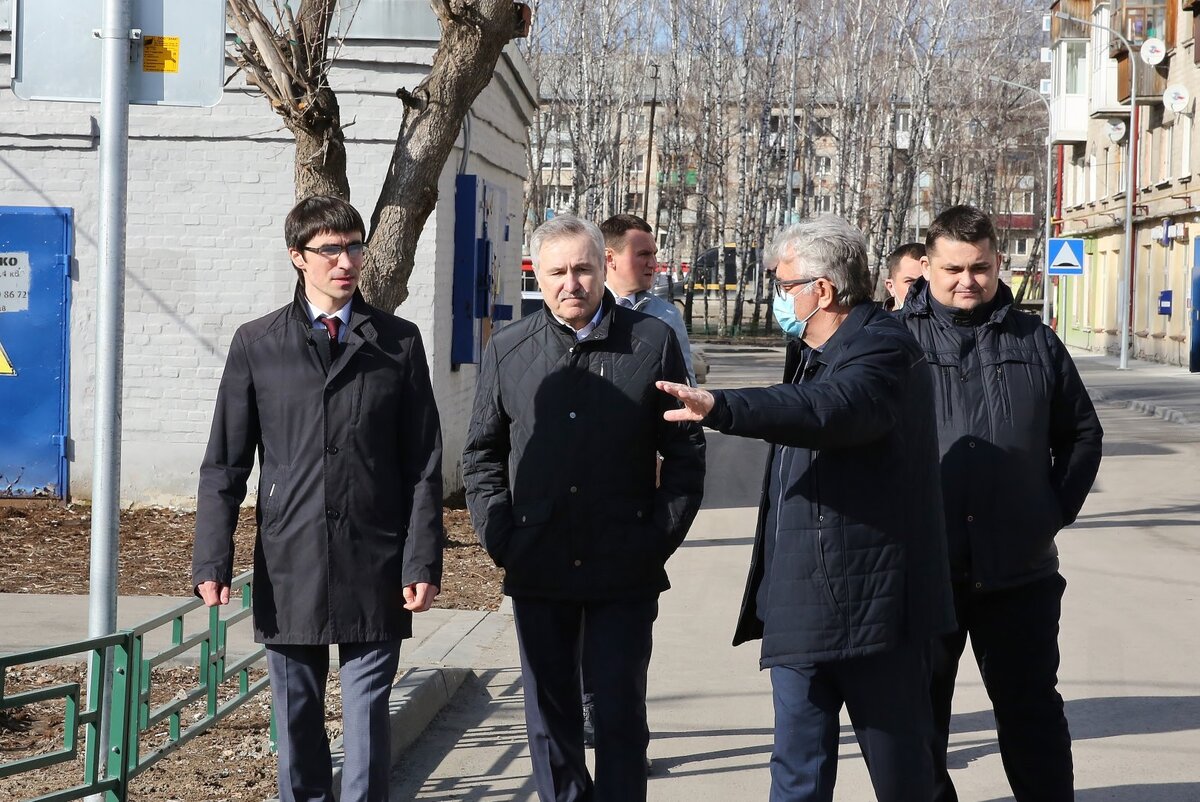 Руководитель управы Ленинского административного округа Александр Ильин совместно с депутатом Тюменской областной думы – региональным координатором нацпроекта «Жилье и городская среда» Сергеем Медведевым, заместителем председателя Тюменской городской думы Дмитрием Осиповым,