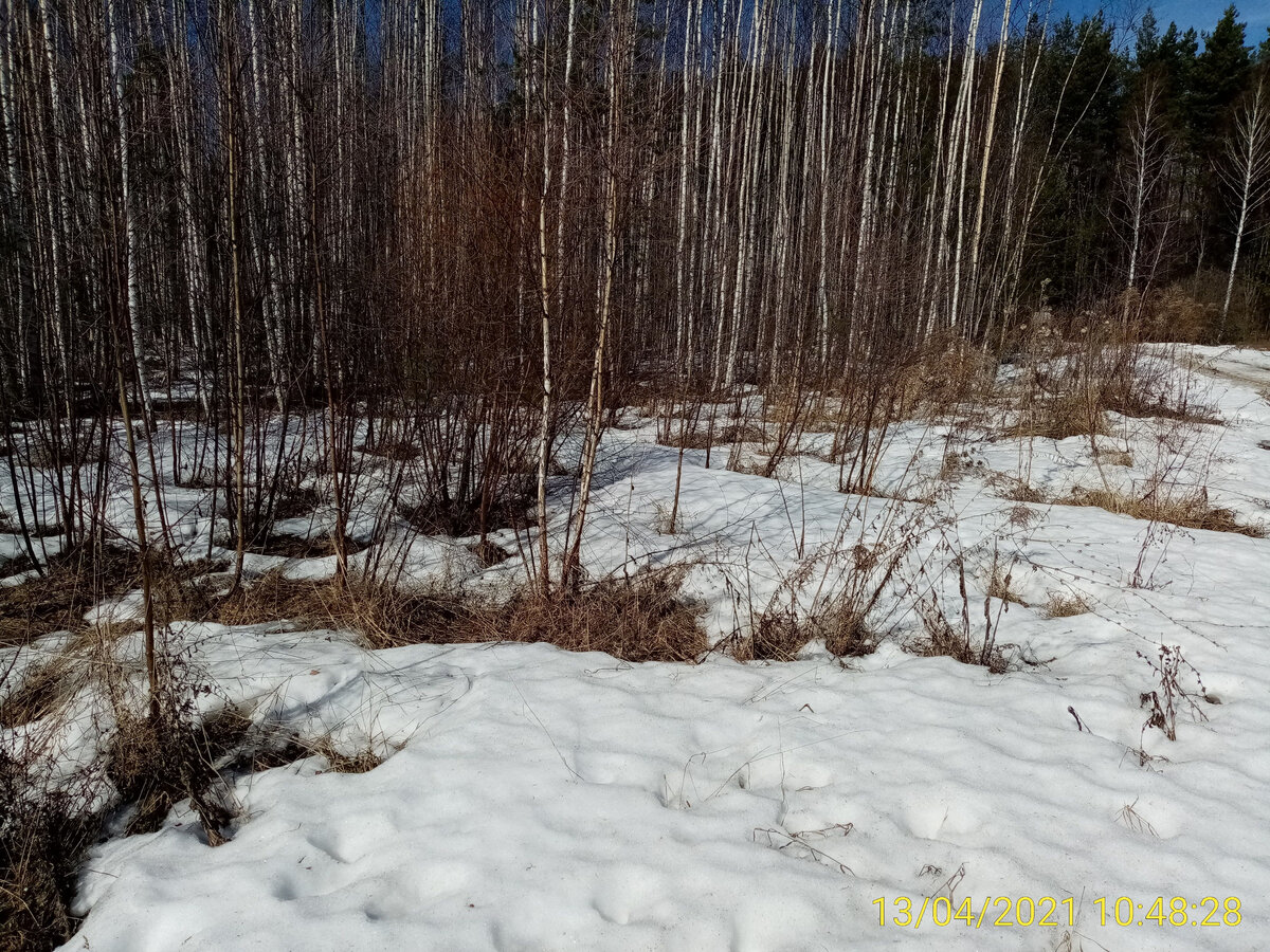 Сегодня 13 апреля 2021 года, в городе снега практически нет. А что же на полях и в лесах? Там снег окончательно не сошёл, но быстро плавится под ярким апрельским солнцем. Дороги, ведущие к садам, как асфальтовые, так и щебёнистые, свободны от снега, но на обочинах ещё лежит. (см. галерею)