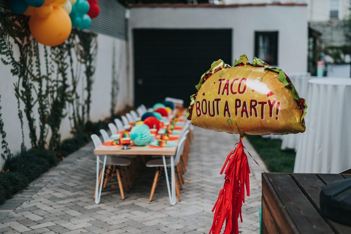 Праздники по любимым книжкам малышей стали очень популярны! Любимая вечеринка сегодняшнего именинника — Драконы любят тако. В России она не очень популярна, но купить ее можно — вдруг и вашим детям понравится эта веселая история? Это очень милая история, но дизайнеров привлекла цветовая гамма, которая может получиться на этой вечеринке! Это же драконы, тако и цвета мексиканской фиесты. Конечно, под каждую книгу не найти тематический декор, поэтому использовались базовые тарелочки и стаканчики от Meri Meri, а в тематике книги сделали угощения и дизайнерские плакаты. Главное, чтобы цвета сочетались! Поэтому, выбрав гамму для сервировки, к ней подобрали подходящие воздушные шарики. Кондитеры постарались на славу и сделали крутые печеньки и очаровательные макаронс в виде тако! Настоящее произведение искусства, это торт, украшенный маленькими тако и большим объевшимся драконом на его верхушке. Все маленькие гости получили в подарок от именинника книгу и забавного дракончика. Такими тематич