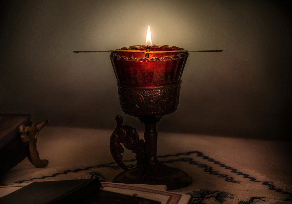 Лампада с греческого языка «lampas» означает переносной светильник или небольшой сосуд, который содержит внутри масло и фитиль. Его зажигают перед образами и огонь не угасает, пока не будет сожжено все масло.