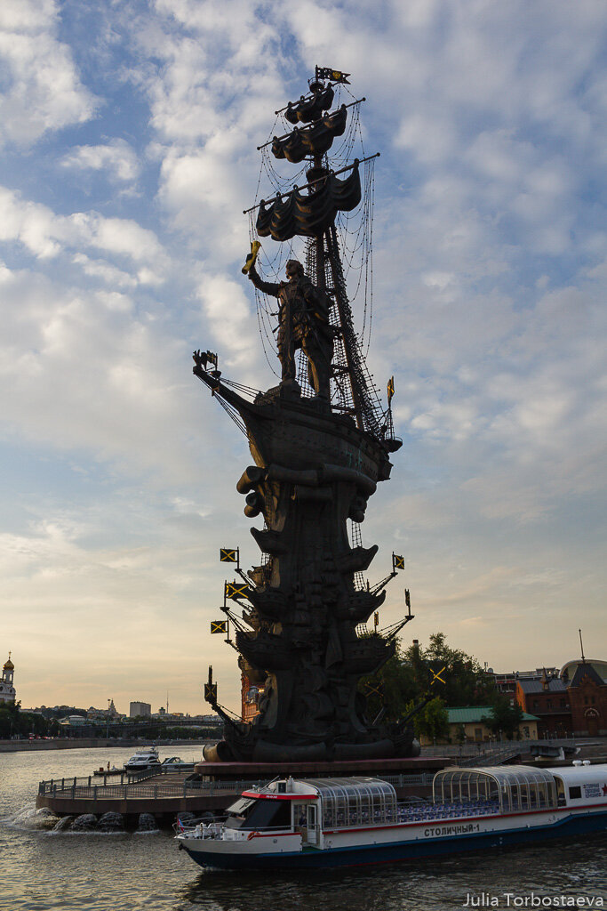 Статуя Петру I авторства Зураба Церетели видна отовсюду, к сожалению. Она меня настолько поразила, что я решила сфотографировать ее .. на память (о том, как не надо делать). Кхм.