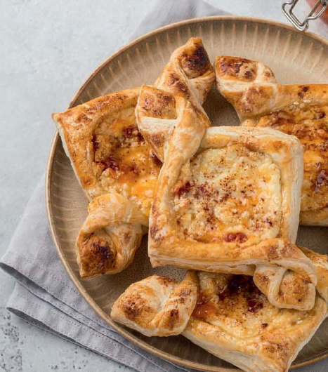 5. На начинку положить столовую ложку джема, посыпать нарубленными орехами. Выпекать слойки в разогретой до 190°C духовке на среднем уровне 20-25 минут до золотистой корочки.