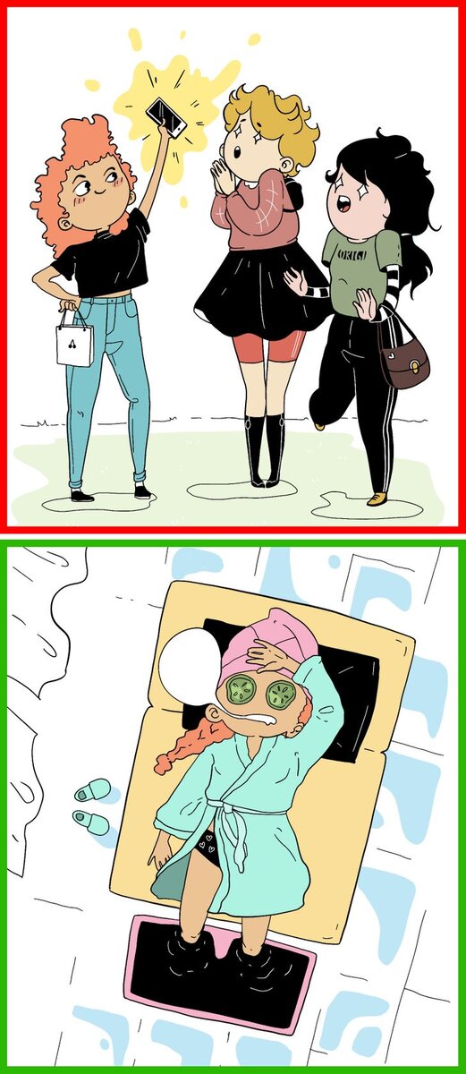 Что делать вместо этого: Помните, что чувствовать себя хорошо лучше, чем хорошо выглядеть. Потому что, честно говоря, еще один дорогой свитер не заставит вас чувствовать себя лучше в долгосрочной перспективе. И за те же деньги вы могли бы также побаловать себя днем в спа-салоне, из которого вернетесь отдохнувшими, расслабленными и готовыми к решению всех стоящих перед вами задач.